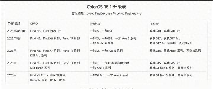 2026年4月30日,是首批机型开启ColorOS 16.1升级的报复节点。OPPO阵营中,Find N6折叠屏旗舰、Find X9系列(含要领版与Pro版)以及Find X9s Pro最初取得系统更新。这些机型在升级后,不仅在系统通顺度上进一步提高,智能交互功能如跨屏互联、秘密防范等也得到强化。消亡天,一加品牌的一加15和一加15T两款新机同步适配,一加数字系列向来以性能调度和游戏优化见长,ColorOS 16.1的加入让其在系统个性化缔造、续航处罚上更具竞争力。realme方面,真我GT8和真我GT8 Pro两款机型开启升级,realme GT系列主打年青性能,这次系统更新后,在散热改动、游戏帧指示会性等方面有望收场防止,为用户打造更千里浸的游戏体验。