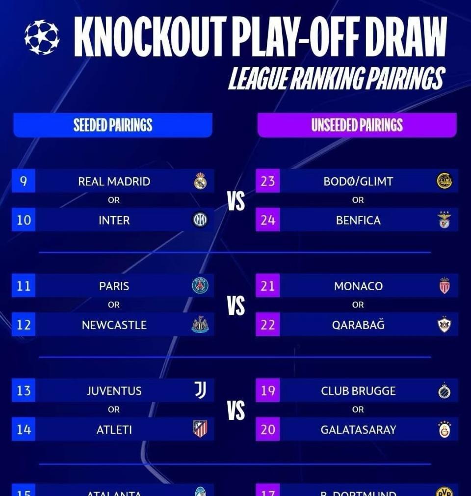 第9名皇马、第10名国米、第23名博德耀眼和第24名本菲卡将瓦解过抽签捉对搏杀,其中皇马和国米是种子队,也便是本菲卡详情会际遇这两支球队中的一支,关于本菲卡主帅来说,皇马和国米都是他的前东家,这两支球队的不少球迷同期还都是穆里尼奥最坚韧的复古者。诚然从表面上来看,本菲卡抽到皇马和国米的概率是一样的,但以欧足联的尿性来看,本菲卡抽到皇马的概率高达90%。