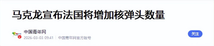 3月2日,法国总统马克龙负责通告,已下令增多本国核弹头数目,同期推出前沿威慑说合,推动欧洲核力量部署蜕变,这一举措径直与中东弥留样式干系联。