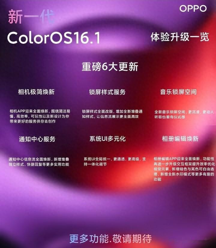 米兰体彩app OPPO ColorOS16.1新版块将带来6大重磅更新。