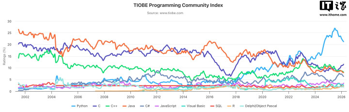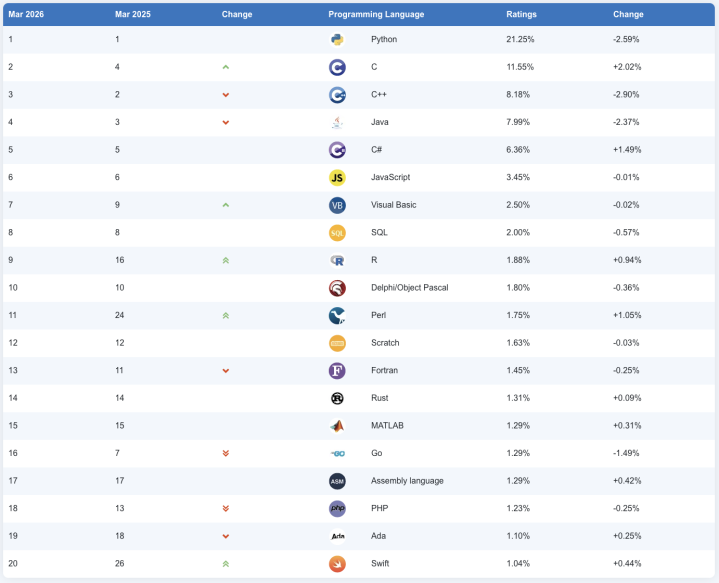 IT之家3月9日音书,TIOBE编程社区指数是一个算计编程言语受接待经由的贪图,评判的依据来自天下鸿沟内的工程师、课程、供应商及搜索引擎,当今TIOBE官网公布了2026年3月的编程言语排名榜,IT之家整理如下: