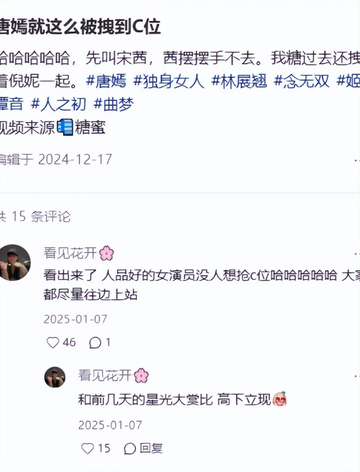 她这番作风在网友眼里很博好感,无须争抢,惟有地位够高,连资方王人会当然把她推到C位去。