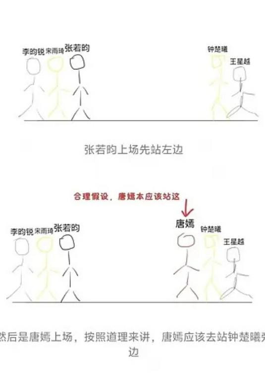但网友却怀疑,她恣虐了其他明星嘉宾的剖析,莫得按照平时的站位端正来站,导致总共这个词站位王人杂乱了。