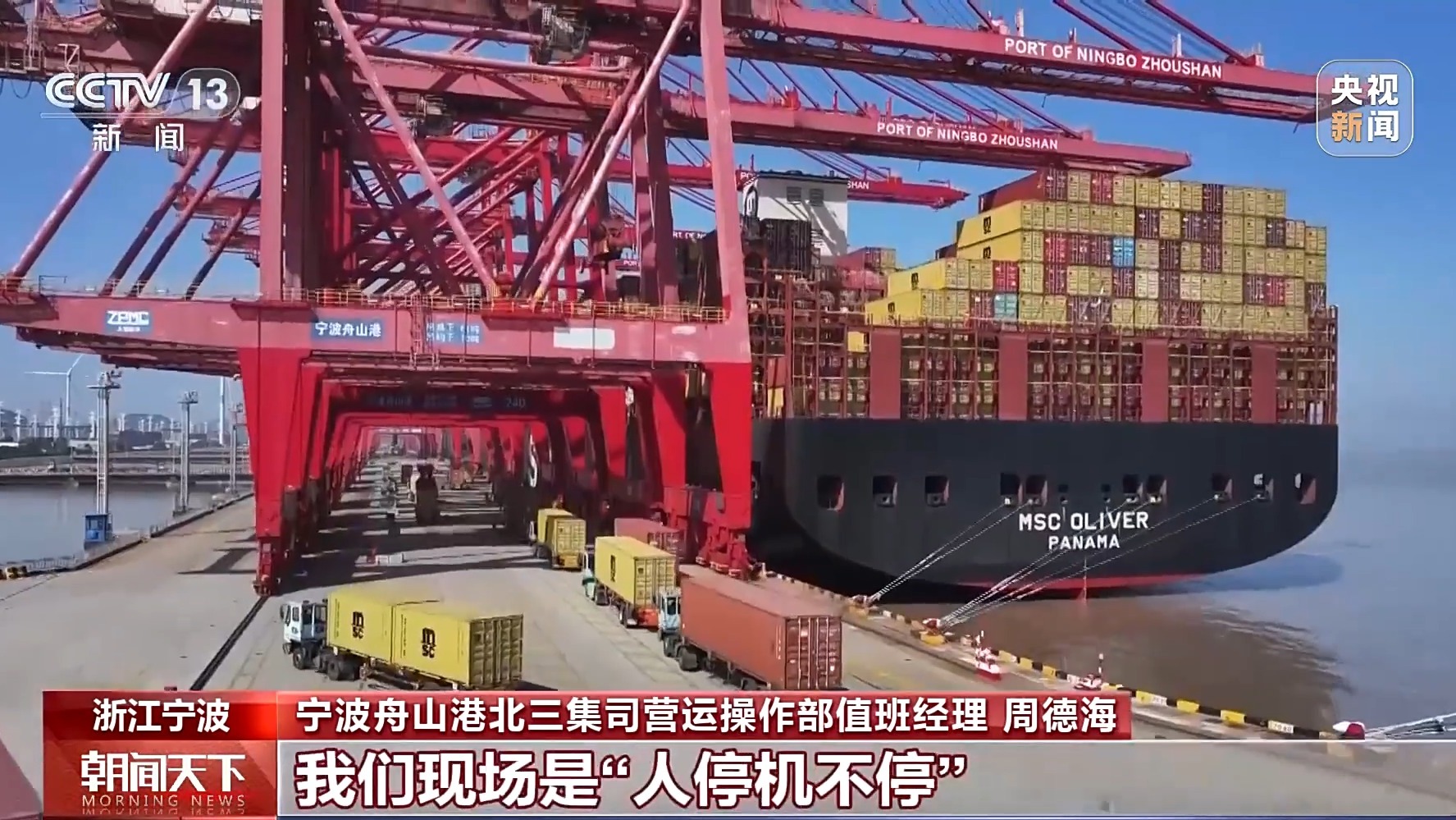 陆路班列络续开行,海上和空中的买卖纠合雷同密切。宁波舟山港在春节时代装卸功课24小时不阻隔。大年月朔到初六,宁波舟山港完成集装箱混沌量超78万圭臬箱,同比增长超17%。