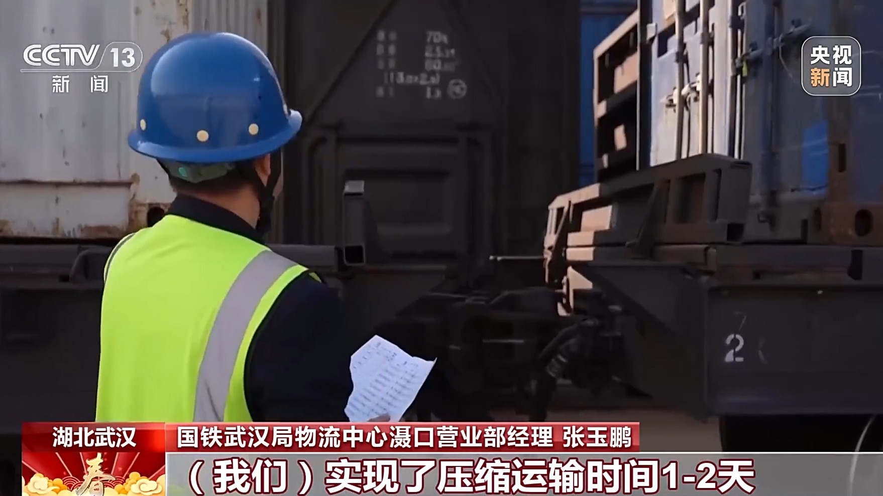 国铁武汉局物流中心滠口营业部司理 张玉鹏:目下货量昭彰上来了,许多企业开年第一批货皆聚会在这几天发运,每天发到3列掌握。通过前置检察、集强迫运、双始发站联动,咱们竣事了压缩运载时候1-2天、镌汰物流本钱15%。