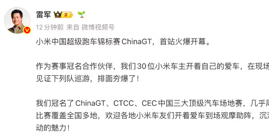 米兰体彩app 雷军: 小米冠名了 ChinaGT、CTCC、CEC 中国三大顶级汽车场面赛, 确实周周有赛事