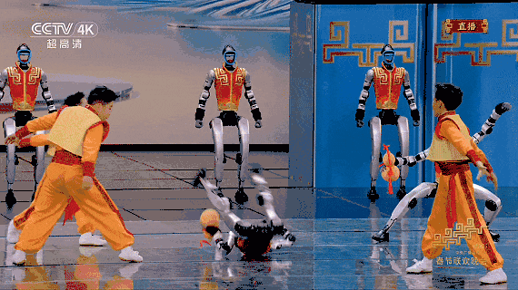 宇树科技的东谈主形机器东谈主G1、H2和真东谈主演员总共饰演,完成了倒退跨越禁绝、后空翻等高难度动作,还手握长棍、双节棍、长剑等进行技击饰演,还饰演了一段醉拳。