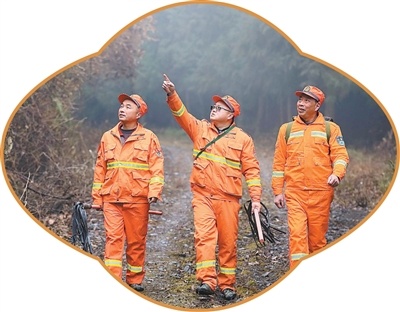 王勇(中)和护林员们一齐巡山。